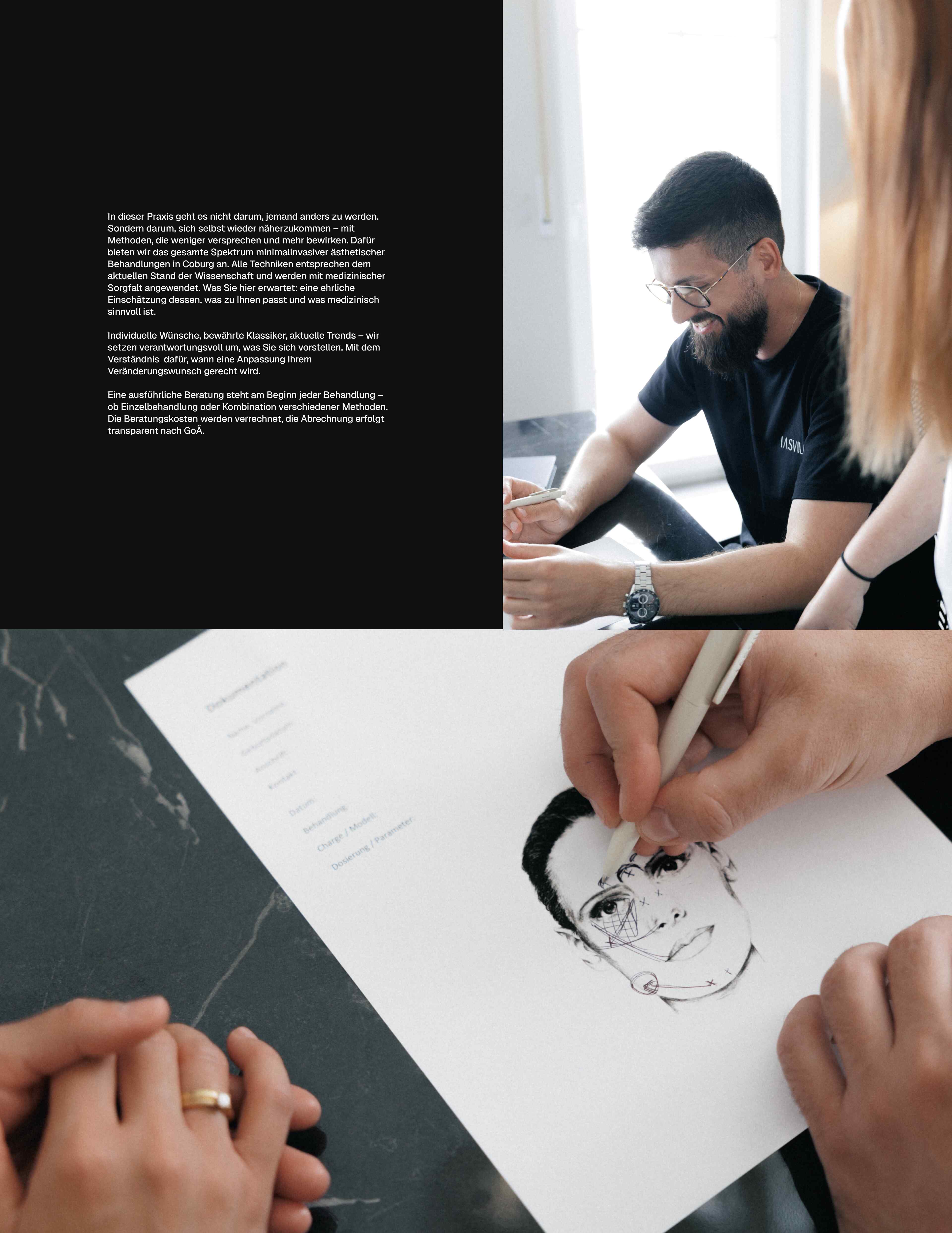Wir haben den Namen IASVILI zur Signatur erhoben und eine visuelle Welt erschaffen, die von der Kraft des Kontrasts lebt. Tiefschwarz trifft auf absolute Klarheit. Die minimalistische Serifentypografie fungiert dabei als Gütesiegel, das auf haptisch veredelten Gutscheinen ebenso überzeugt wie auf dem reduzierten Praxisschild oder der exklusiven Team-Bekleidung.